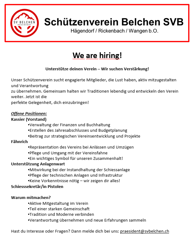 - Schiesszeiten sind im Kalender 2025 eingetragen!